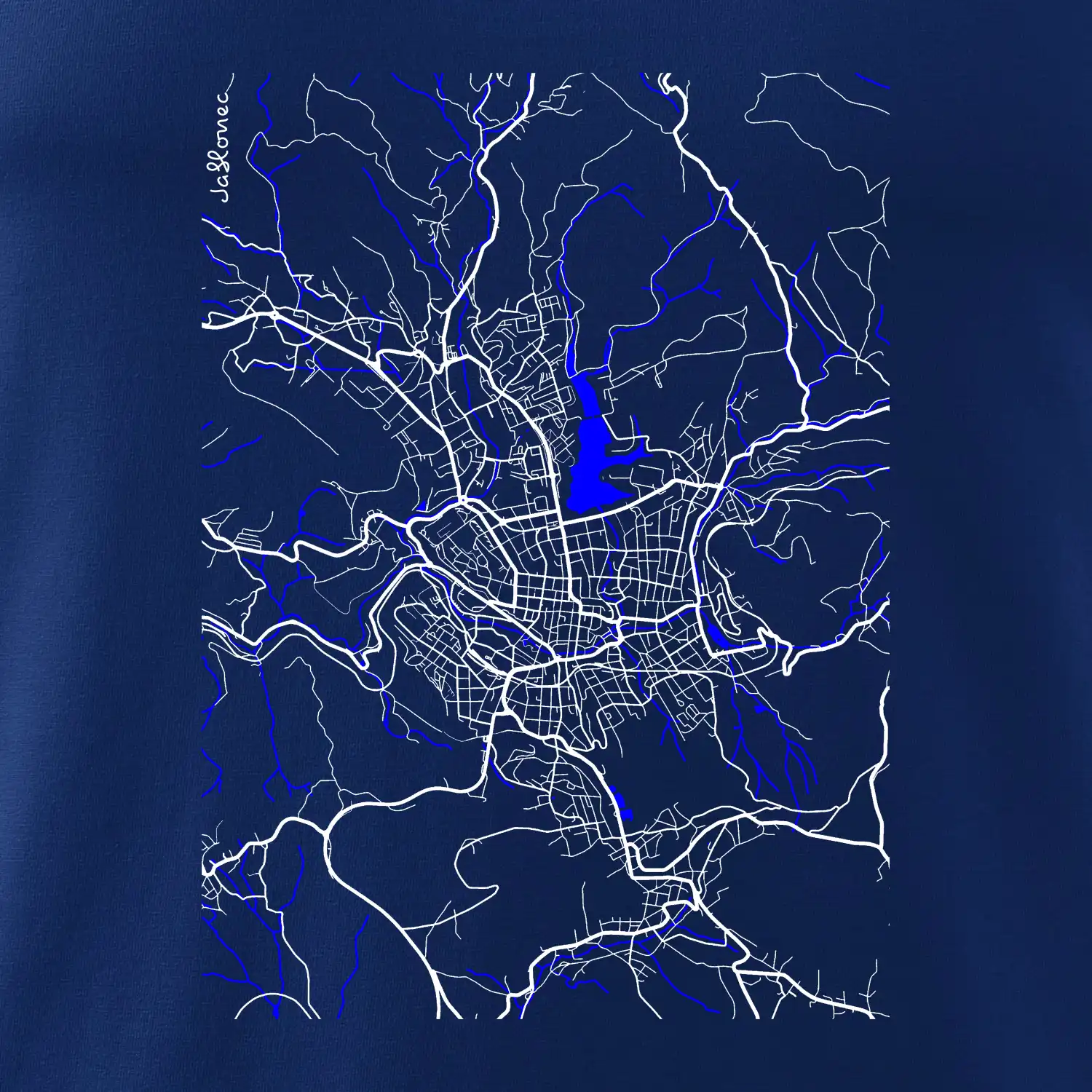 Jablonec nad Nisou - Mapa s vodními toky