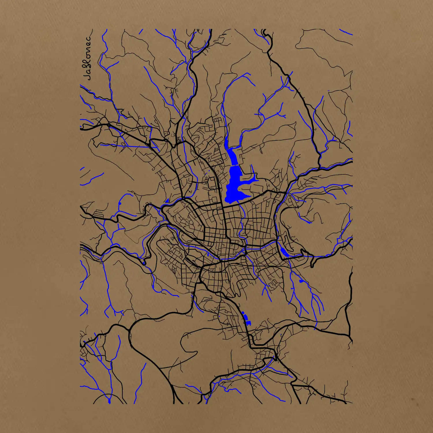 Jablonec nad Nisou - Mapa s vodními toky