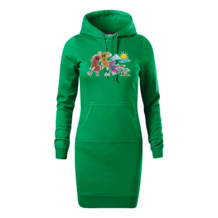 Dámské mikinové šaty MALFINI Snap 419 jsou ideální volbou pro ženy, které hledají pohodlný a stylový kousek pro volný čas nebo každodenní nošení. Lehce vypasovaný střih s bočními švy podtrhuje ženskou siluetu, zatímco kapuce s podšívkou a stahovací šňůrkou dodává ležérní vzhled. Šaty mají délku nad kolena a jsou vybaveny nakládanou kapsou ve stylu „klokanky“. Materiál je měkký a příjemný na dotek díky směsi bavlny a polyesteru s nepočesanou vnitřní stranou.