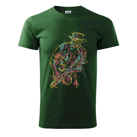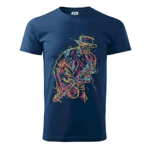 Triko, na kterém je kreslený jazzman, potěší každého příznivce jazzu. Hudební triko se saxofonem je vhodný dárek pro saxofonistu. Pokud je saxofon a hudba na každém tvém kroku, tohle triko se k tobě bude skvěle hodit! Triko pro saxofonistu a pravého jazzmana.