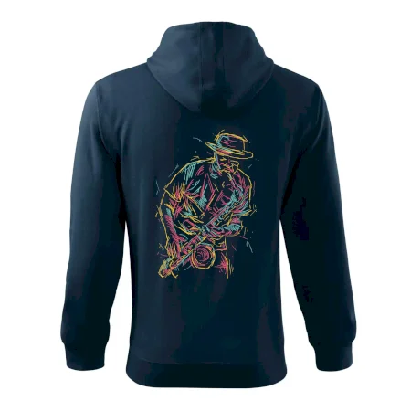 Triko, na kterém je kreslený jazzman, potěší každého příznivce jazzu. Hudební triko se saxofonem je vhodný dárek pro saxofonistu. Pokud je saxofon a hudba na každém tvém kroku, tohle triko se k tobě bude skvěle hodit! Triko pro saxofonistu a pravého jazzmana.