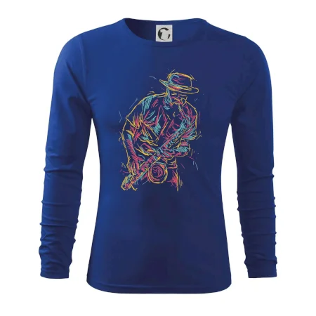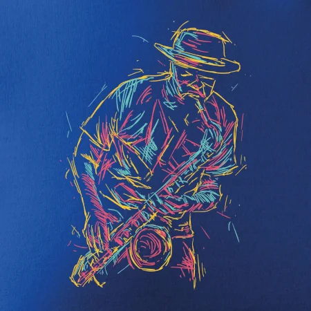 Triko, na kterém je kreslený jazzman, potěší každého příznivce jazzu. Hudební triko se saxofonem je vhodný dárek pro saxofonistu. Pokud je saxofon a hudba na každém tvém kroku, tohle triko se k tobě bude skvěle hodit! Triko pro saxofonistu a pravého jazzmana.
