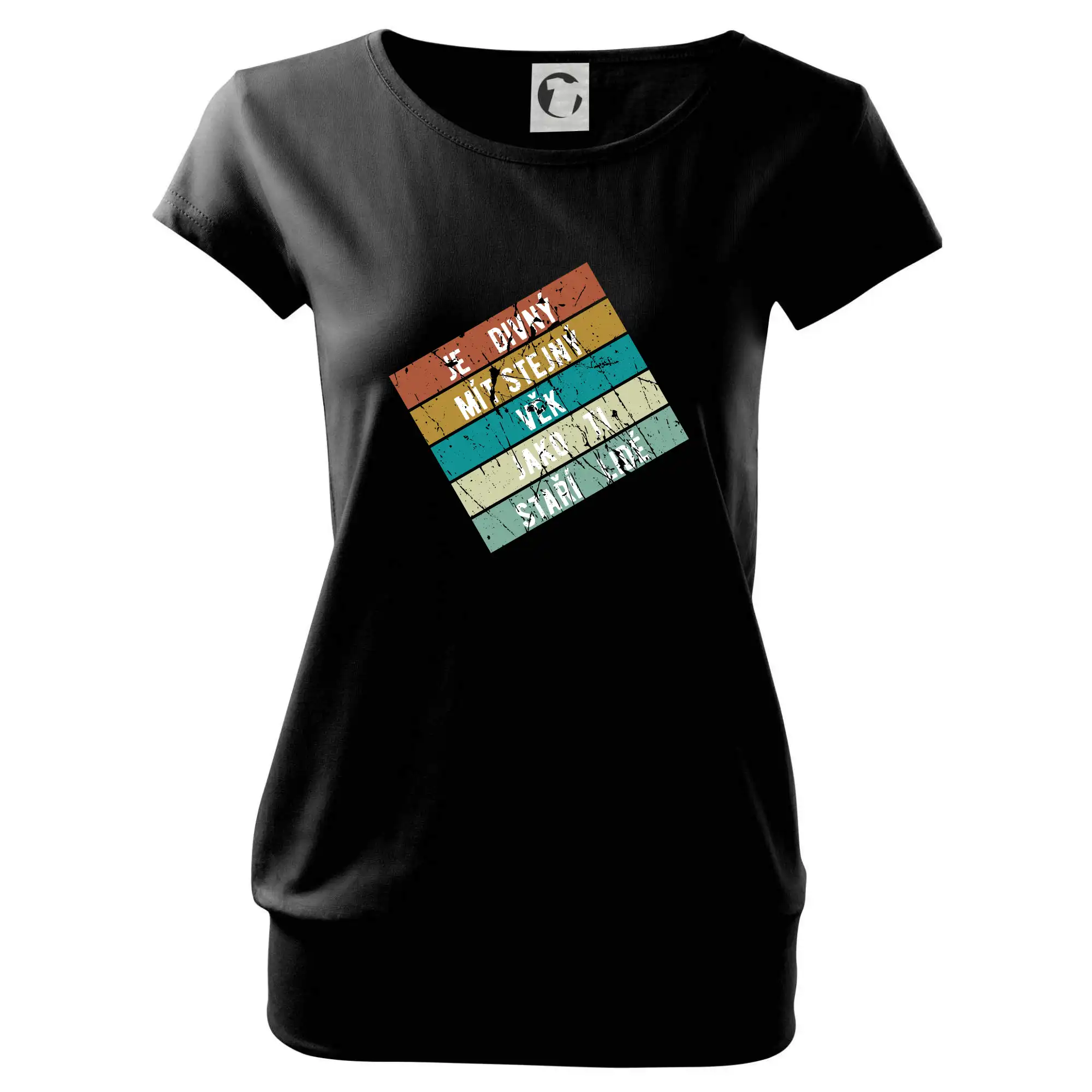 Trendové dámské triko s velmi krátkým rukávem, volnějšího střihu, v dolním kraji všité do širokého lemu. Kulatý průkrčník s úzkým lemem ze shodného materiálu.