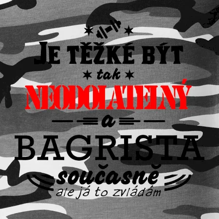 Tričko střední gramáže v barvách camouflage. Střih s bočními švy. Lem průkrčníku ze žebrového úpletu s přídavkem 5 % elastanu. Vnitřní část zadního průkrčníku začištěna páskou v barvě camouflage.