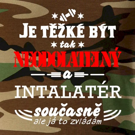Tričko střední gramáže v barvách camouflage. Střih s bočními švy. Lem průkrčníku ze žebrového úpletu s přídavkem 5 % elastanu. Vnitřní část zadního průkrčníku začištěna páskou v barvě camouflage.