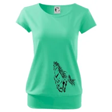 Trendové dámské triko s velmi krátkým rukávem, volnějšího střihu, v dolním kraji všité do širokého lemu. Kulatý průkrčník s úzkým lemem ze shodného materiálu.