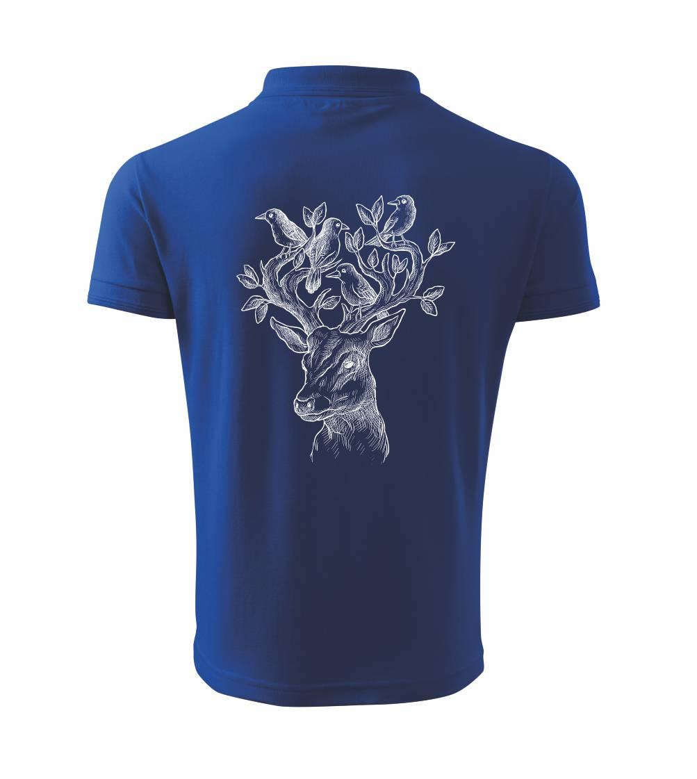 Triko s jelenem, který má v paroží celý svět. Jelen na triku je vhodný dárek pro milovníka přírody. Jelenovy parohy zdobí nějaký ten ptáček. A kdo by nechtěl mít na triku takové pěkné zvíře?