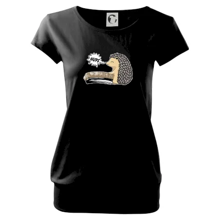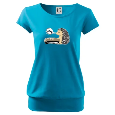 Trendové dámské triko s velmi krátkým rukávem, volnějšího střihu, v dolním kraji všité do širokého lemu. Kulatý průkrčník s úzkým lemem ze shodného materiálu.