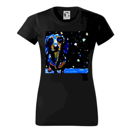 Jezevčík a noční obloha - olejová malba