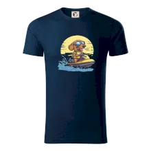 Pánské tričko s krátkým rukávem vyšší gramáže. Módní, přiléhavý střih s bočními švy. Úzký lem průkrčníku ze žebrového úpletu s přídavkem 5 % elastanu. Vnitřní část zadního průkrčníku začištěna páskou. Zpevněný ramenní šev.