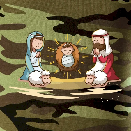 Tričko střední gramáže v barvách camouflage. Střih s bočními švy. Lem průkrčníku ze žebrového úpletu s přídavkem 5 % elastanu. Vnitřní část zadního průkrčníku začištěna páskou v barvě camouflage.
