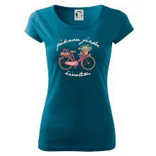 Tričko s přáním dalších šťastných let na cestě životem. Triko s kolem a květinou v košíku. Triko pro ženu cyklistku. Do teď to nebylo špatné, ale co příjde nyní? No přeci pohodová jízda. Daruj krásné a originální triko k narozeninám.