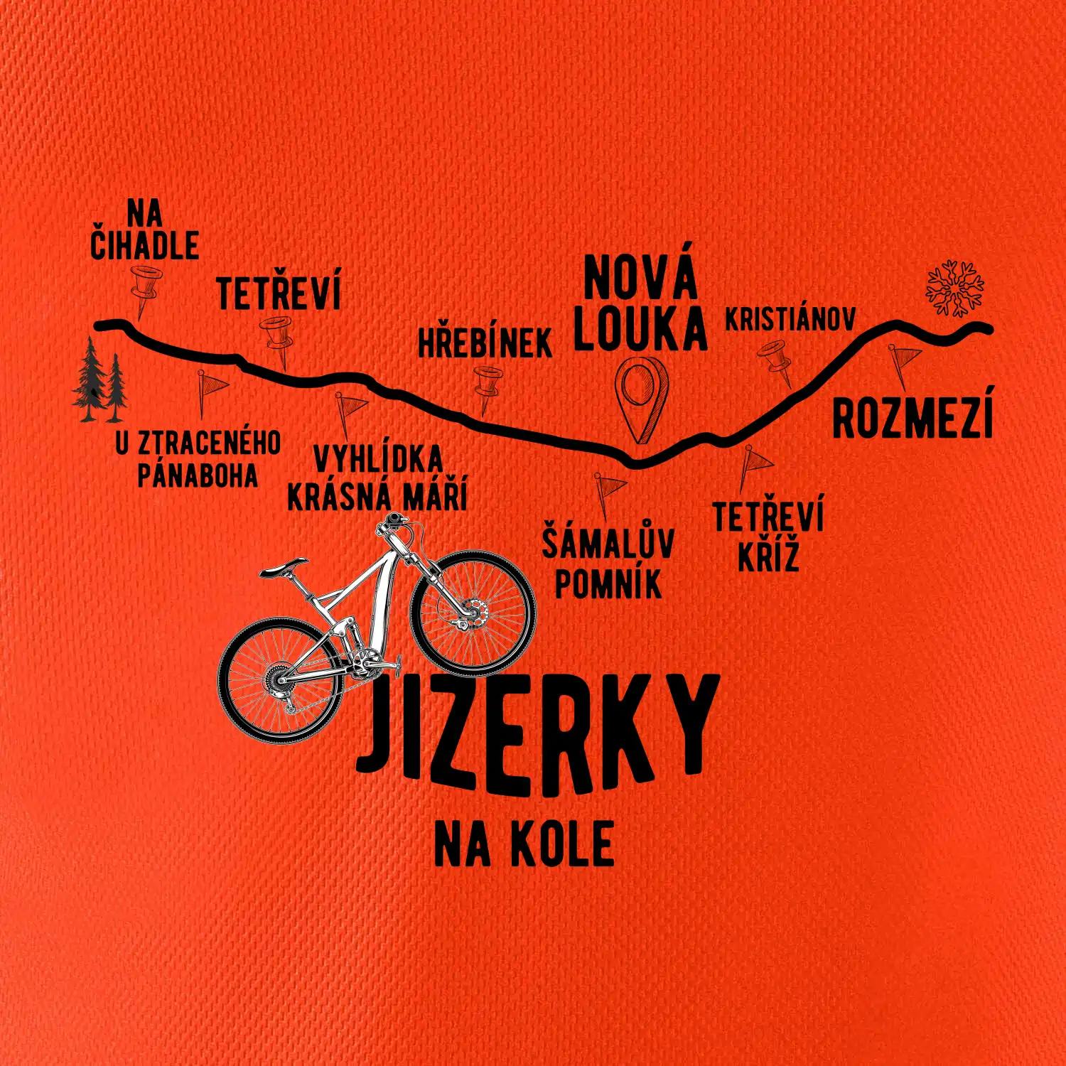 Chystáš se na výlet na kole do srdce Jizerských hor? Pak musíš obléct triko od MyShirt. Zaprvé budeš originální a zadruhé ti triko ukazuje nejznámější turistické body Jizerek, které musíš navštívit. Tak pojď do této výzvy a pořiď si triko na svou vyjížďku.