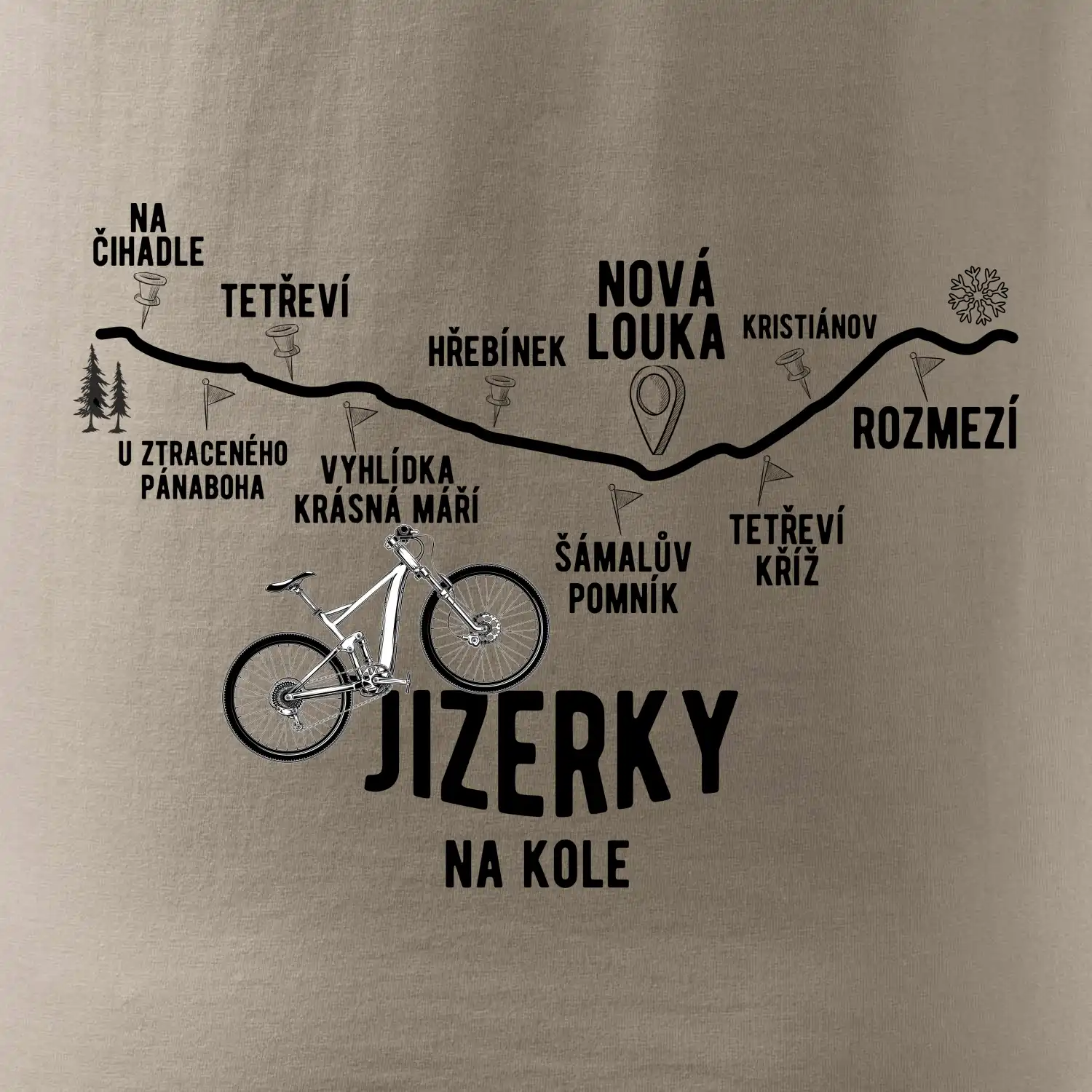 Chystáš se na výlet na kole do srdce Jizerských hor? Pak musíš obléct triko od MyShirt. Zaprvé budeš originální a zadruhé ti triko ukazuje nejznámější turistické body Jizerek, které musíš navštívit. Tak pojď do této výzvy a pořiď si triko na svou vyjížďku.