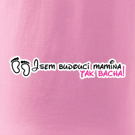 Vtipné triko pro holku s nápisem "Jsem budoucí mamina, tak bacha!" Pokud i ty jsi v jináči, tohle veselé triko je pro tebe jako dělané. Triko s vtipným nápisem jako dárek pro maminku v očekávání. Trička pro všechny těhotné. Pořiď své kamarádce v jináči vtipný dárek! Vtipné triko s nápisem "Jsem budoucí mamina, tak bacha!" je vtipný dárek pro maminku.