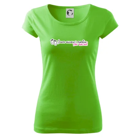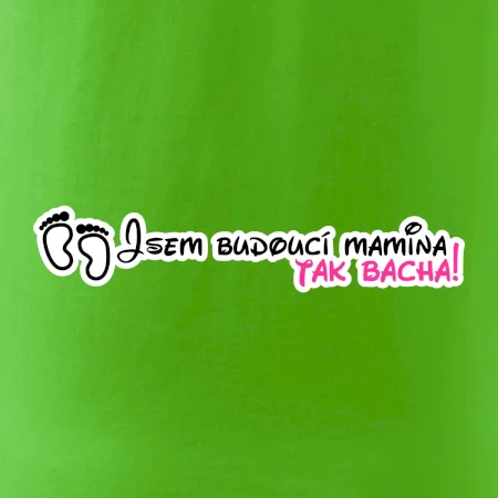 Vtipné triko pro holku s nápisem "Jsem budoucí mamina, tak bacha!" Pokud i ty jsi v jináči, tohle veselé triko je pro tebe jako dělané. Triko s vtipným nápisem jako dárek pro maminku v očekávání. Trička pro všechny těhotné. Pořiď své kamarádce v jináči vtipný dárek! Vtipné triko s nápisem "Jsem budoucí mamina, tak bacha!" je vtipný dárek pro maminku.