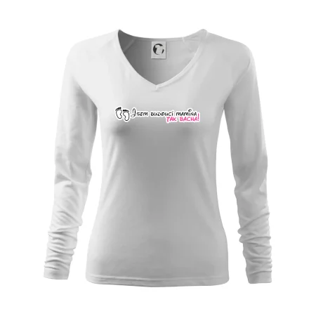 Vtipné triko pro holku s nápisem "Jsem budoucí mamina, tak bacha!" Pokud i ty jsi v jináči, tohle veselé triko je pro tebe jako dělané. Triko s vtipným nápisem jako dárek pro maminku v očekávání. Trička pro všechny těhotné. Pořiď své kamarádce v jináči vtipný dárek! Vtipné triko s nápisem "Jsem budoucí mamina, tak bacha!" je vtipný dárek pro maminku.