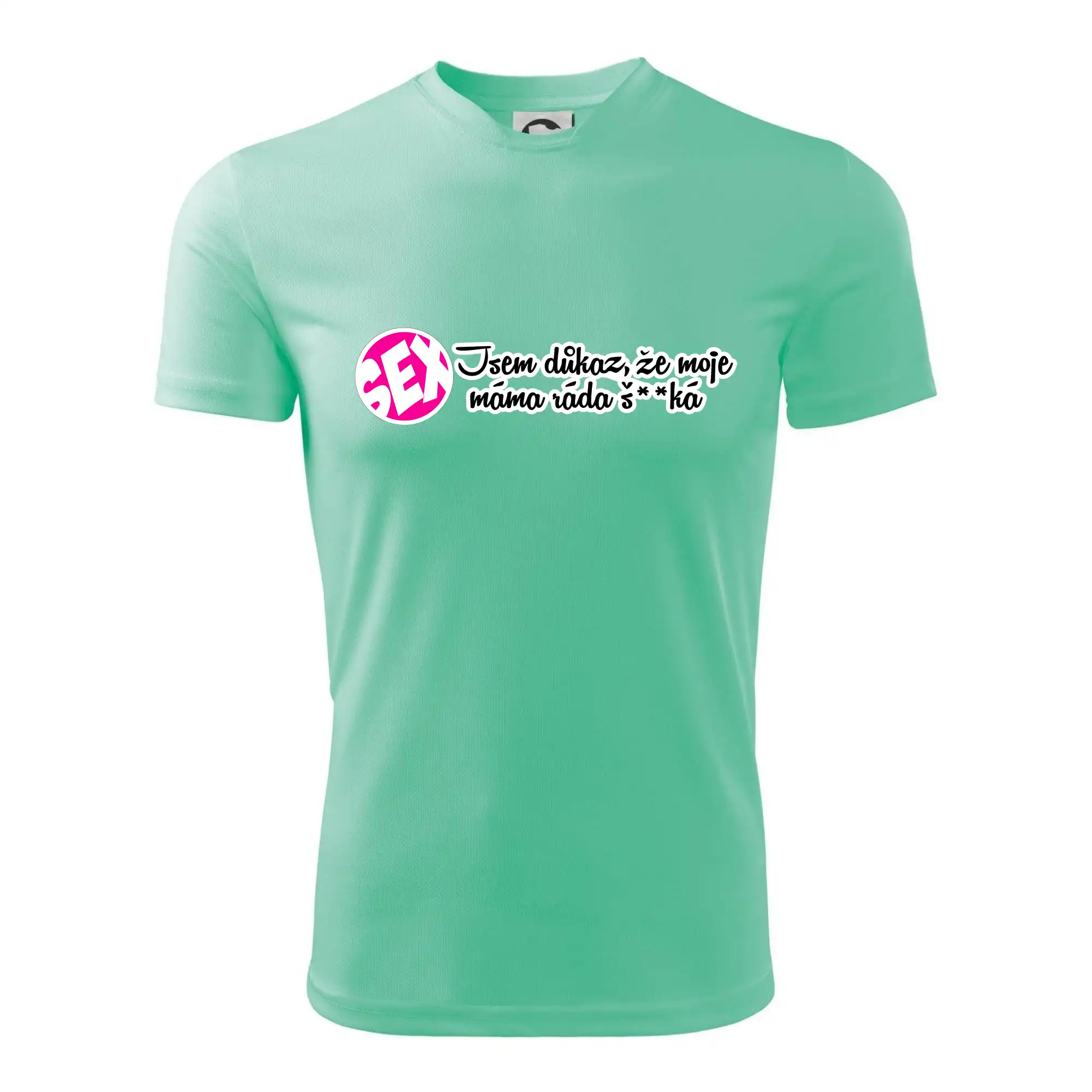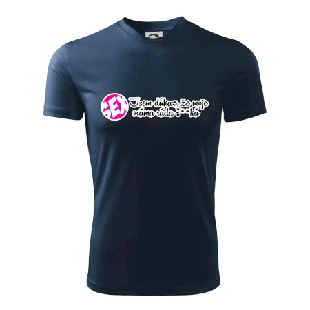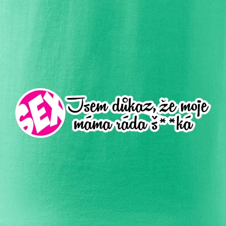 Vtipné triko s nápisem "Jsem důkaz toho, že moje máma ráda šuká". Triko pro vtipálka.
