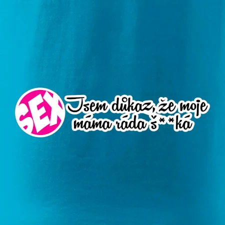 Vtipné triko s nápisem "Jsem důkaz toho, že moje máma ráda šuká". Triko pro vtipálka.