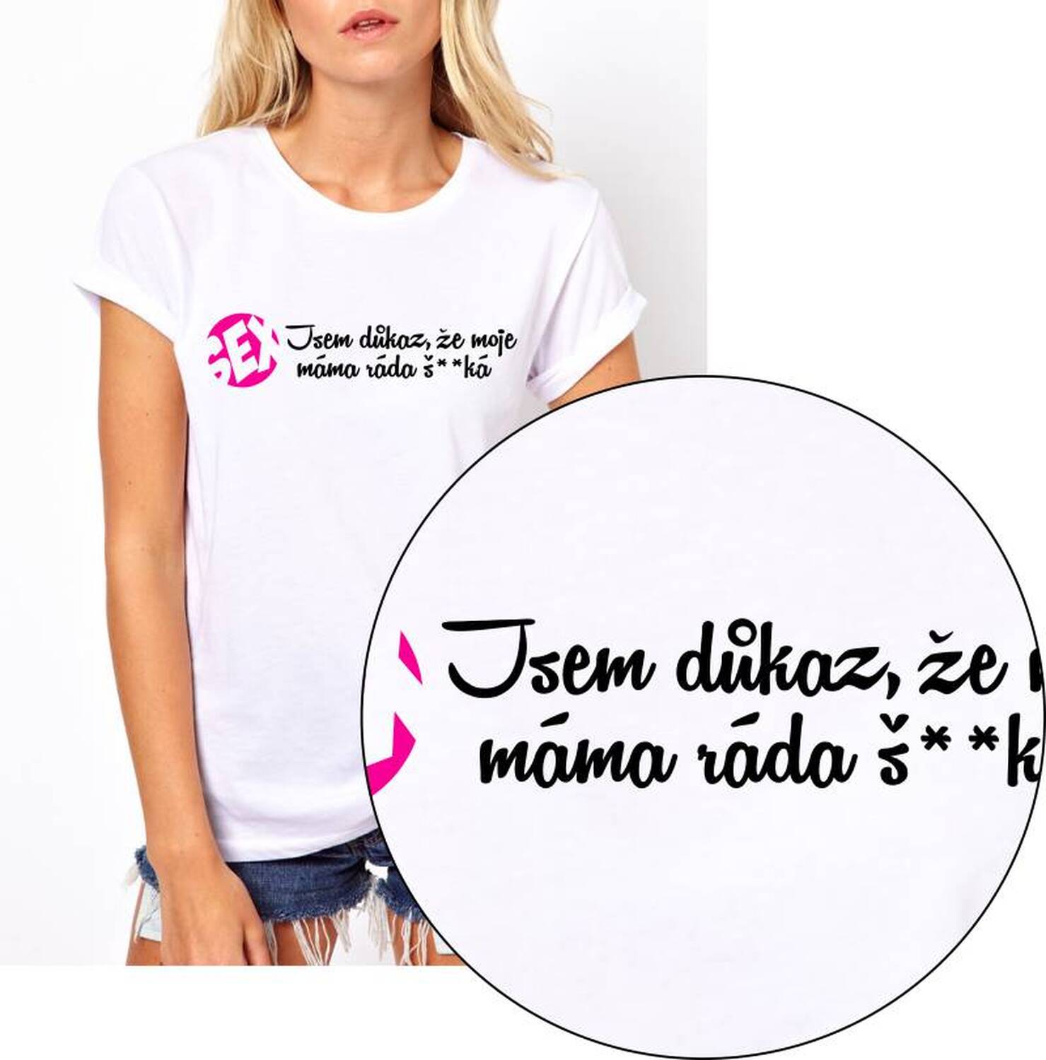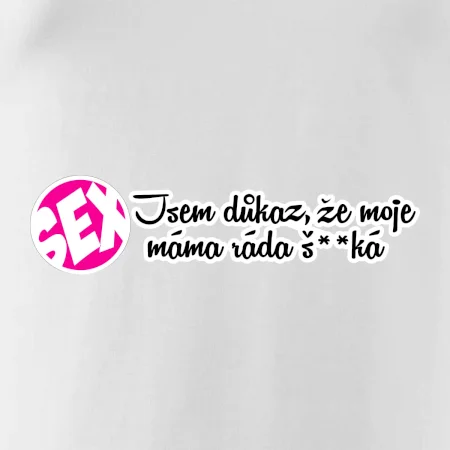 Vtipné triko s nápisem "Jsem důkaz toho, že moje máma ráda šuká". Triko pro vtipálka.