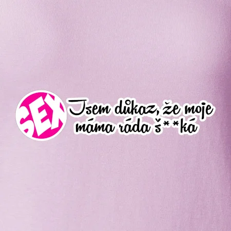 Vtipné triko s nápisem "Jsem důkaz toho, že moje máma ráda šuká". Triko pro vtipálka.