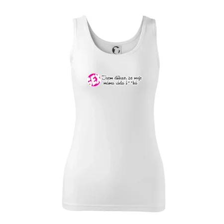 Vtipné triko s nápisem "Jsem důkaz toho, že moje máma ráda šuká". Triko pro vtipálka.