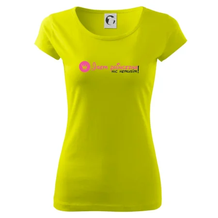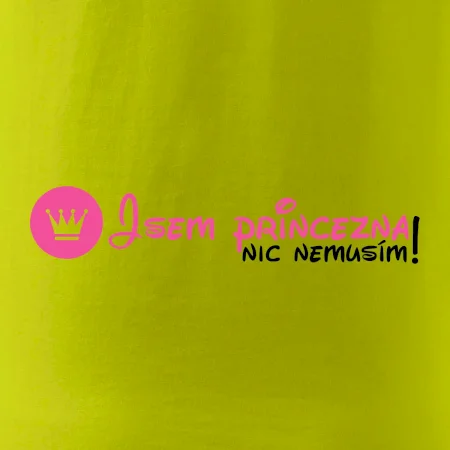Vtipné triko pro holku s nápisem "Jsem princezna, nic nemusím!" Pokud i ty jsi princezna, tohle veselé triko je pro tebe jako dělané. Triko s vtipným nápisem jako dárek pro holku.
