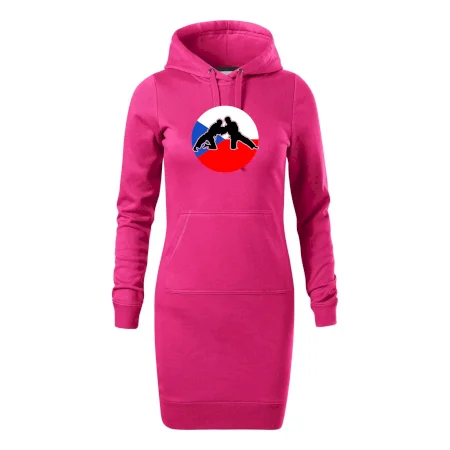 Dámské mikinové šaty MALFINI Snap 419 jsou ideální volbou pro ženy, které hledají pohodlný a stylový kousek pro volný čas nebo každodenní nošení. Lehce vypasovaný střih s bočními švy podtrhuje ženskou siluetu, zatímco kapuce s podšívkou a stahovací šňůrkou dodává ležérní vzhled.