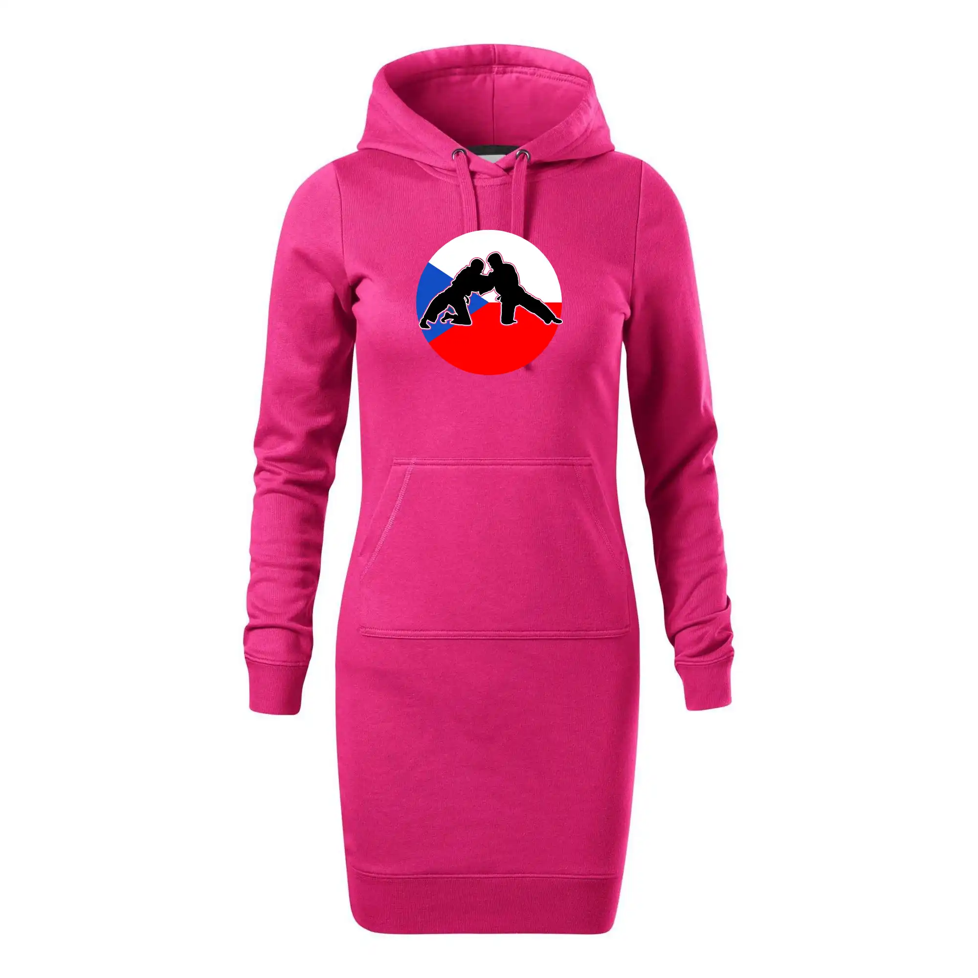 Dámské mikinové šaty MALFINI Snap 419 jsou ideální volbou pro ženy, které hledají pohodlný a stylový kousek pro volný čas nebo každodenní nošení. Lehce vypasovaný střih s bočními švy podtrhuje ženskou siluetu, zatímco kapuce s podšívkou a stahovací šňůrkou dodává ležérní vzhled. Šaty mají délku nad kolena a jsou vybaveny nakládanou kapsou ve stylu „klokanky“. Materiál je měkký a příjemný na dotek díky směsi bavlny a polyesteru s nepočesanou vnitřní stranou.