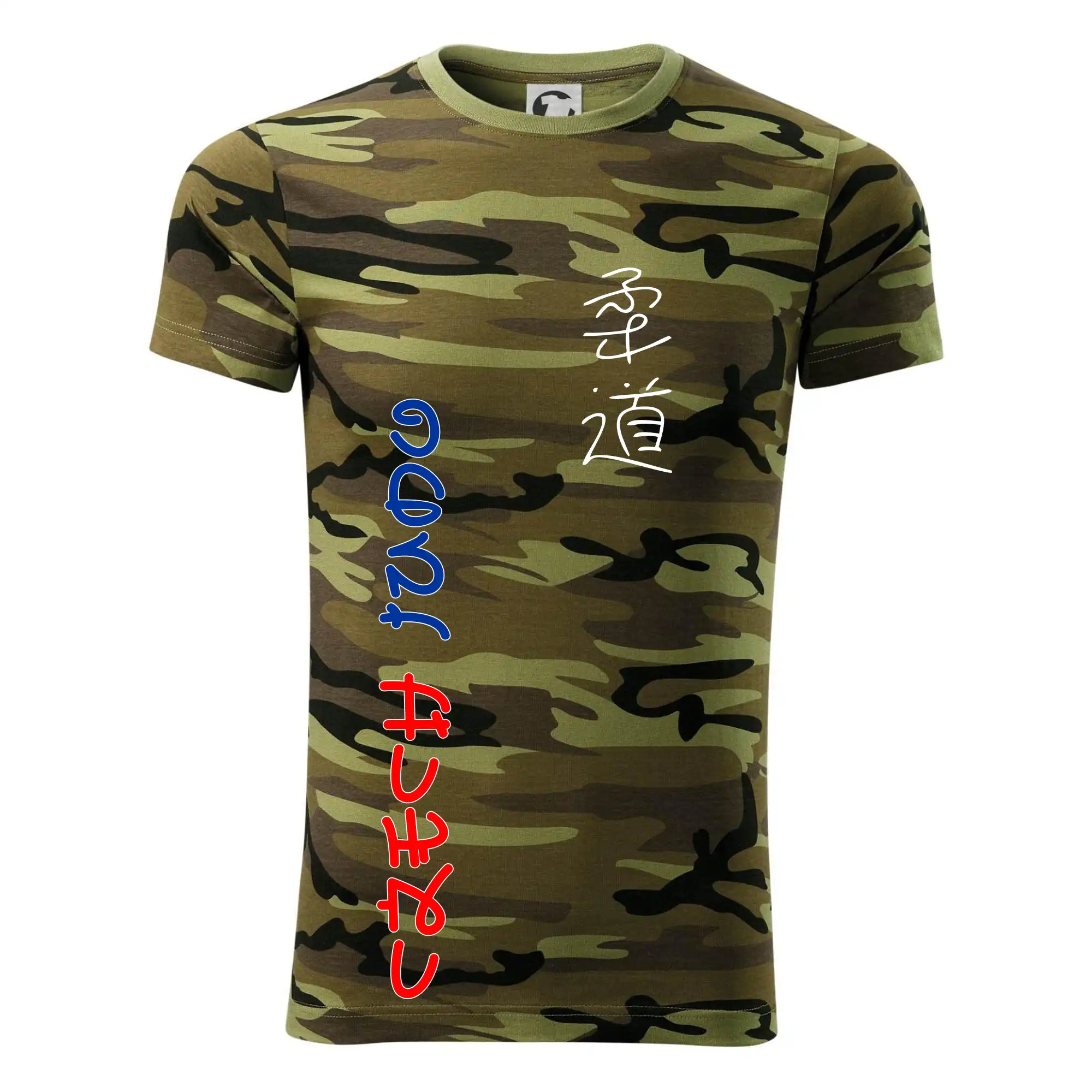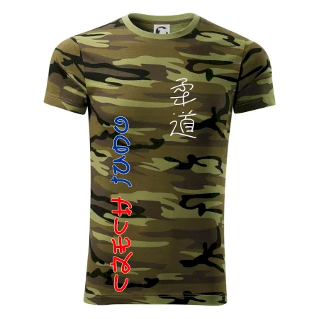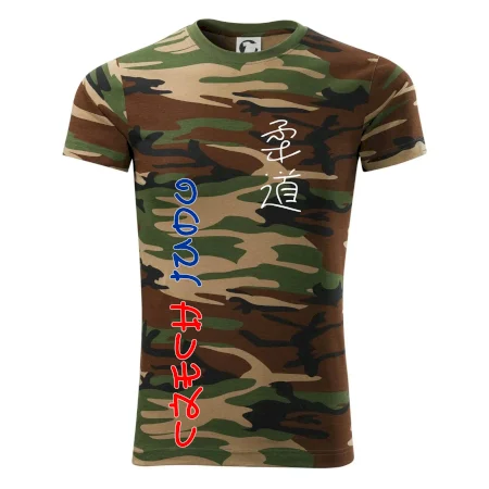 Tričko střední gramáže v barvách camouflage. Střih s bočními švy. Lem průkrčníku ze žebrového úpletu s přídavkem 5 % elastanu. Vnitřní část zadního průkrčníku začištěna páskou v barvě camouflage.