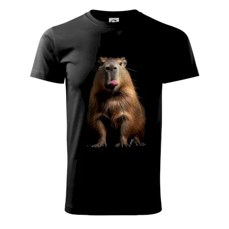 Kapybara s vypláznutým jazykem černá fotka