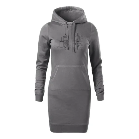 Dámské mikinové šaty MALFINI Snap 419 jsou ideální volbou pro ženy, které hledají pohodlný a stylový kousek pro volný čas nebo každodenní nošení. Lehce vypasovaný střih s bočními švy podtrhuje ženskou siluetu, zatímco kapuce s podšívkou a stahovací šňůrkou dodává ležérní vzhled.