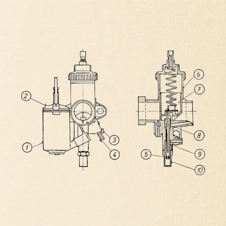 - Určení: Tento karburátor byl montován na širokou škálu motocyklů s objemy motoru přibližně 125ccm, 175ccm, 250ccm a 350ccm.