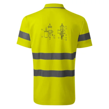 Reflexní polokošile MALFINI HV Runway 2V9 zajišťuje vysokou viditelnost díky fluorescenčnímu polyesteru a certifikovaným retroreflexním pruhům 3M. Pohodlná díky vnitřní bavlněné vrstvě, s bočními švy, žebrovaným límečkem s kontrastním pruhem a légou se třemi knoflíky. Splňuje normy EN ISO 20471 (třída 2) a EN ISO 13688, ideální pro práci i volný čas. Dostupná v reflexní žluté a oranžové, velikosti S-3XL.