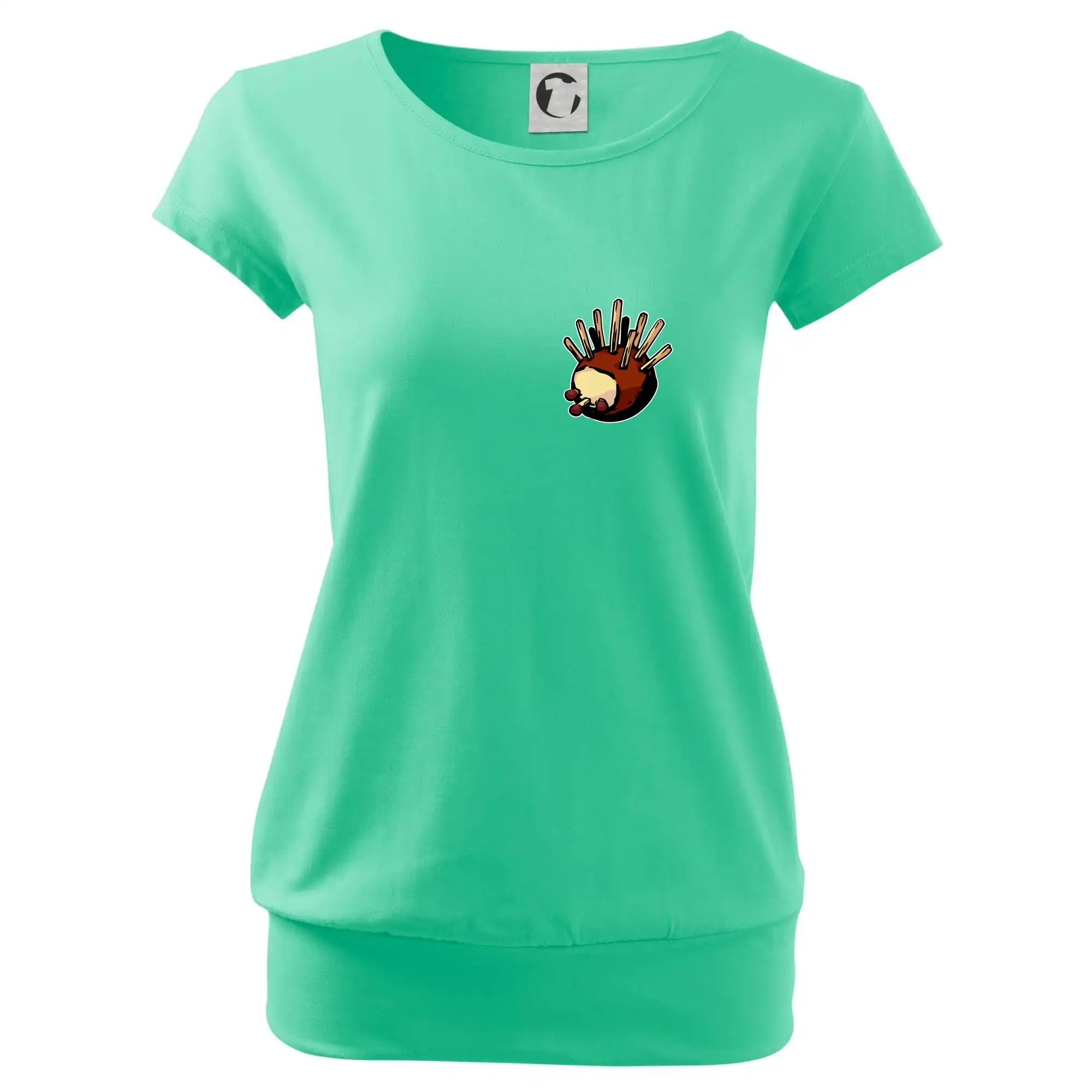Trendové dámské triko s velmi krátkým rukávem, volnějšího střihu, v dolním kraji všité do širokého lemu. Kulatý průkrčník s úzkým lemem ze shodného materiálu.