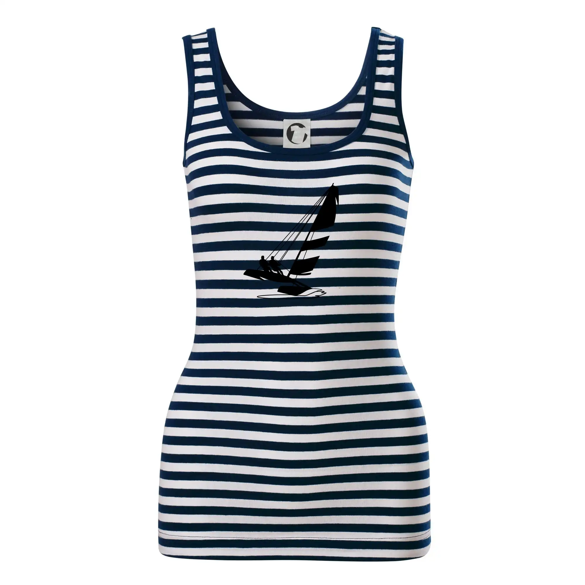 Dámské tílko MALFINI Sailor Top 806 přináší ikonický námořnický vzhled s bílo-modrými pruhy, ideální pro letní dny, výlety nebo ležérní outfity.