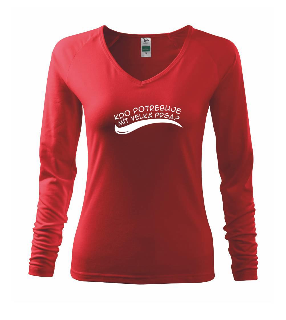 Vtipné triko pro holku, která má malá prsa a smysl pro humor. Na přední straně trička je nápis "Kdo potřebuje mít velká prsa?", vzadu je "Stačí zadek jako tenhle!". Vtipný dárek pro holku s pěkným zadkem.