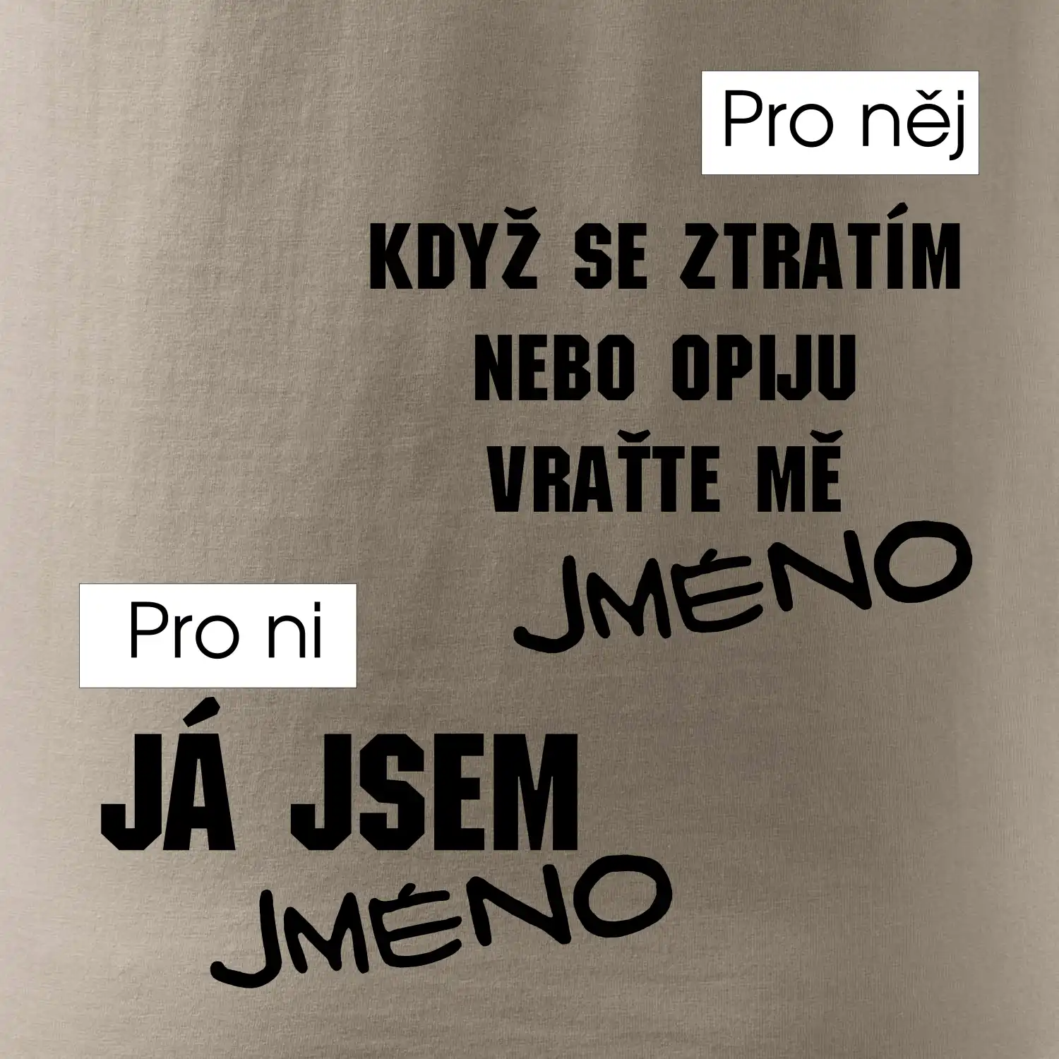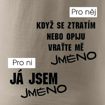 Když se ztratím, nebo opiju, vraťte mě - tvoje jméno -