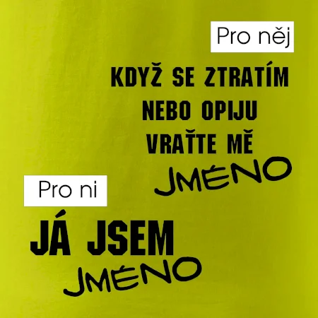 Když se ztratím, nebo opiju, vraťte mě - tvoje jméno -
