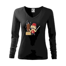 Tolerantnější vypasování dámského střihu, který je vhodný pro všechny typy postavy, ideální délka rukávů a konzervativní výstřih zakončený žebrováním, které skvěle drží tvar.