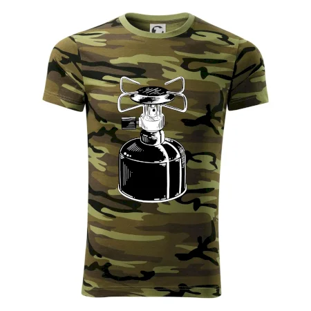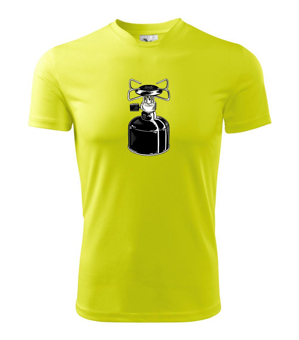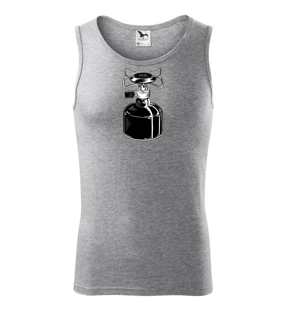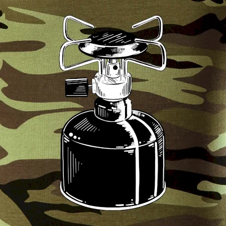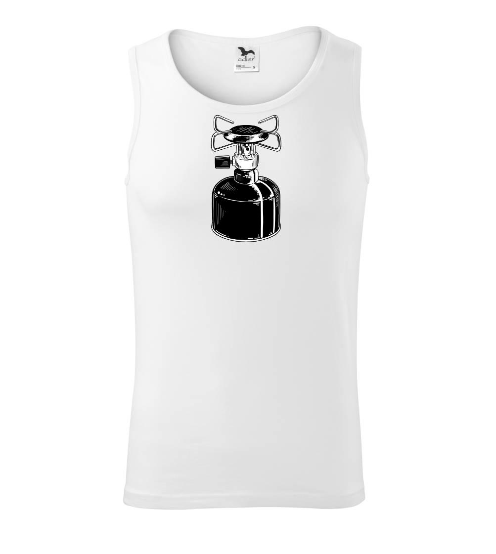Tričko na kemping a pod stan, starý vařič.