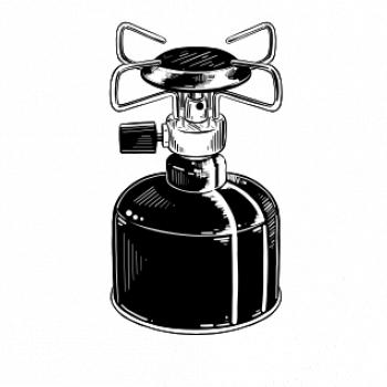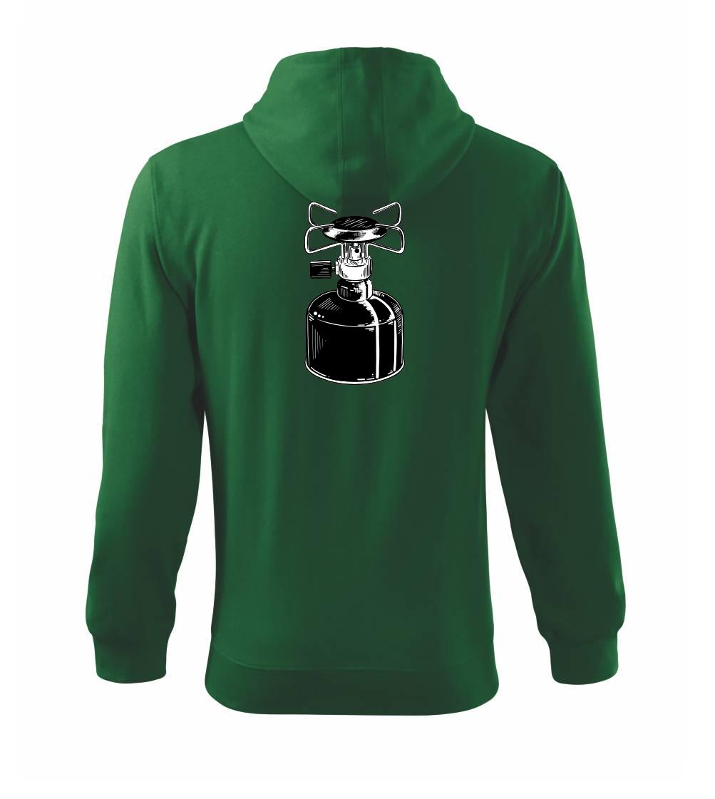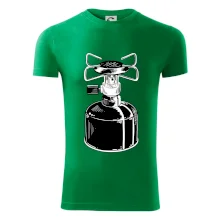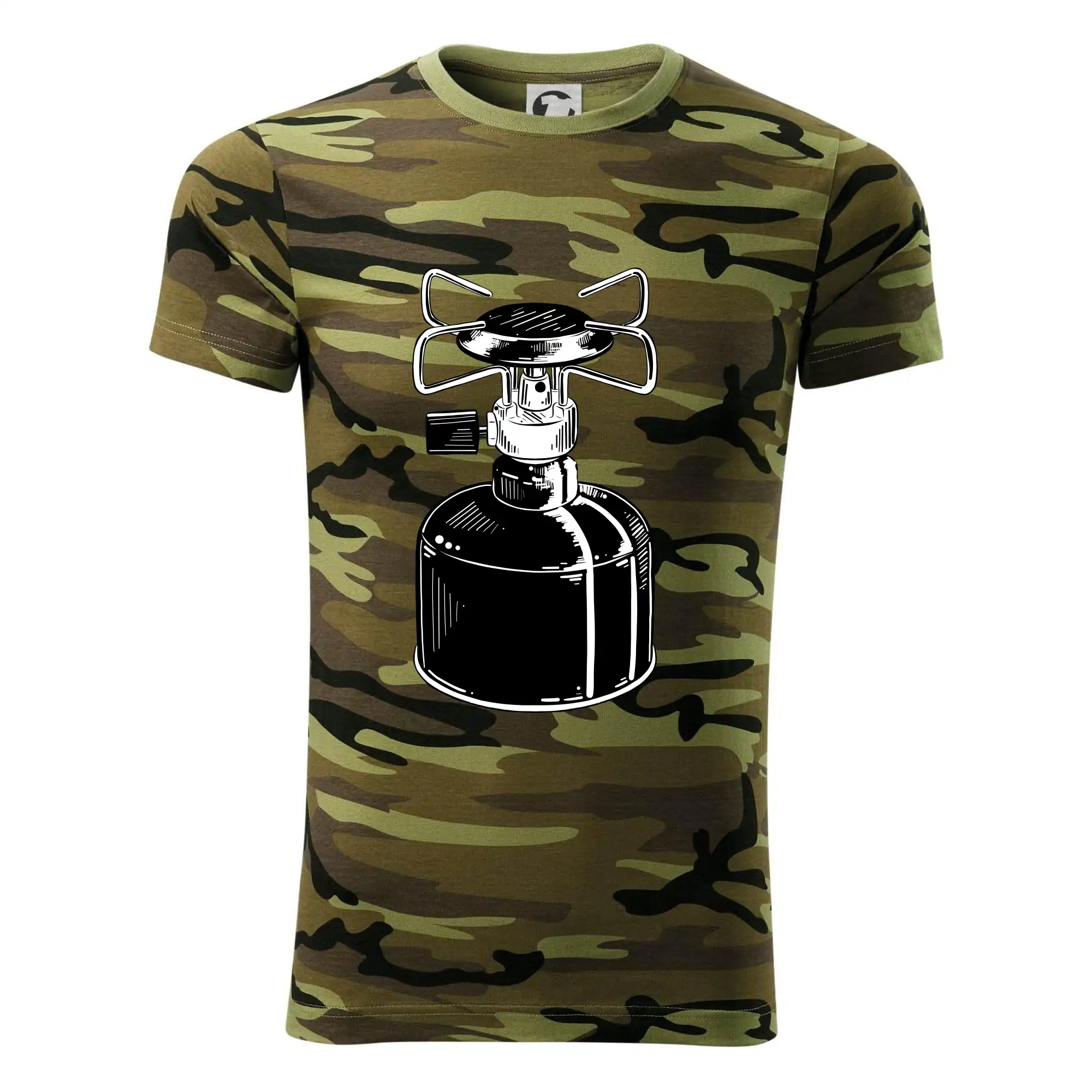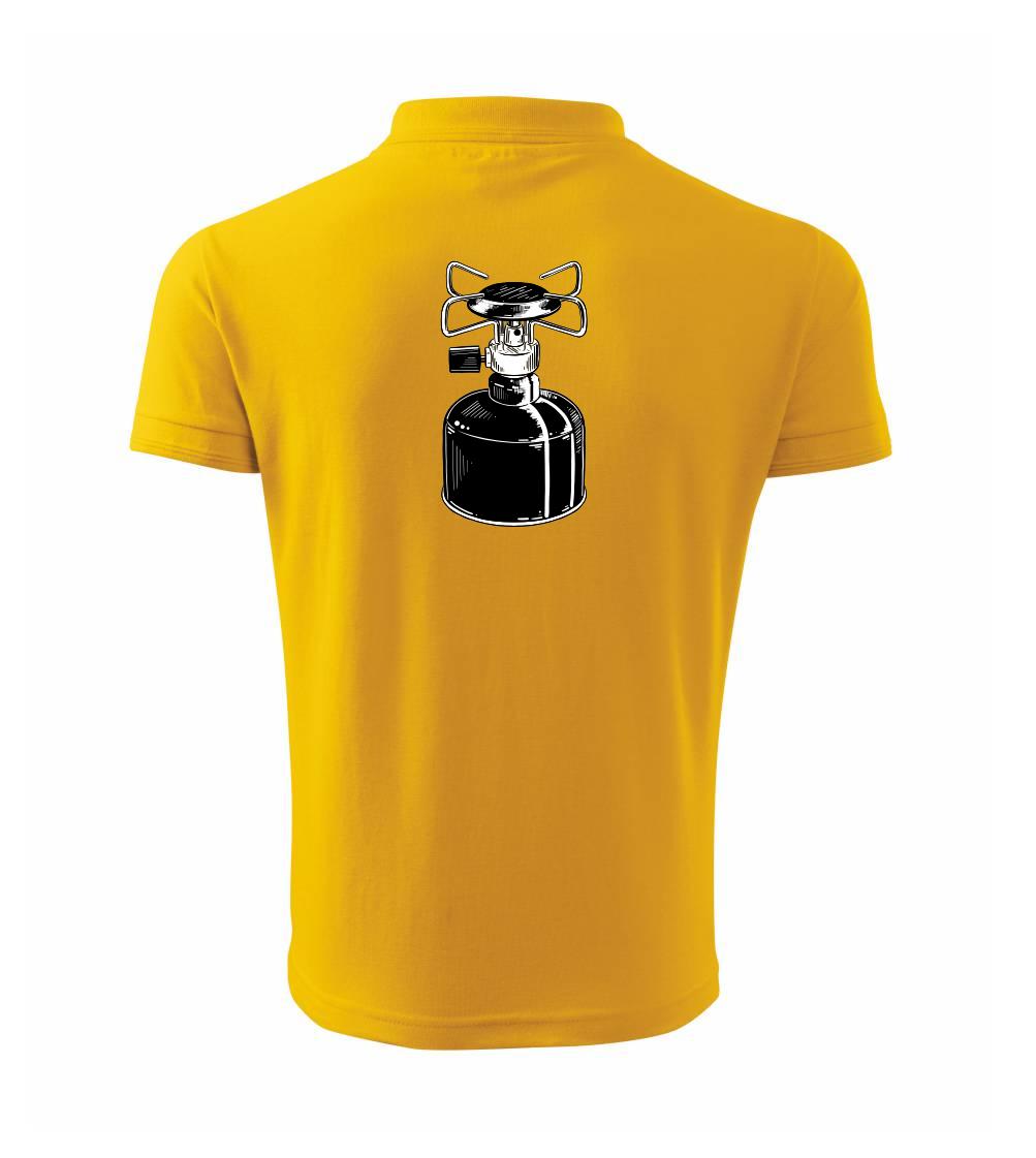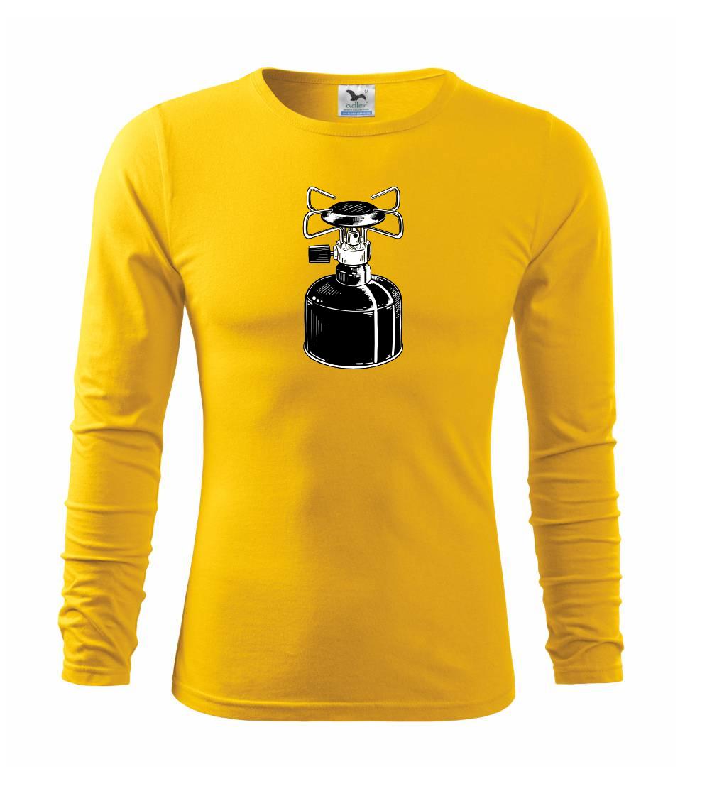 Tričko na kemping a pod stan, starý vařič.