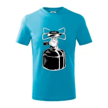 Tričko na kemping a pod stan, starý vařič.