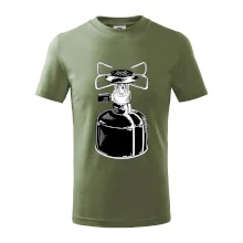 Tričko na kemping a pod stan, starý vařič.