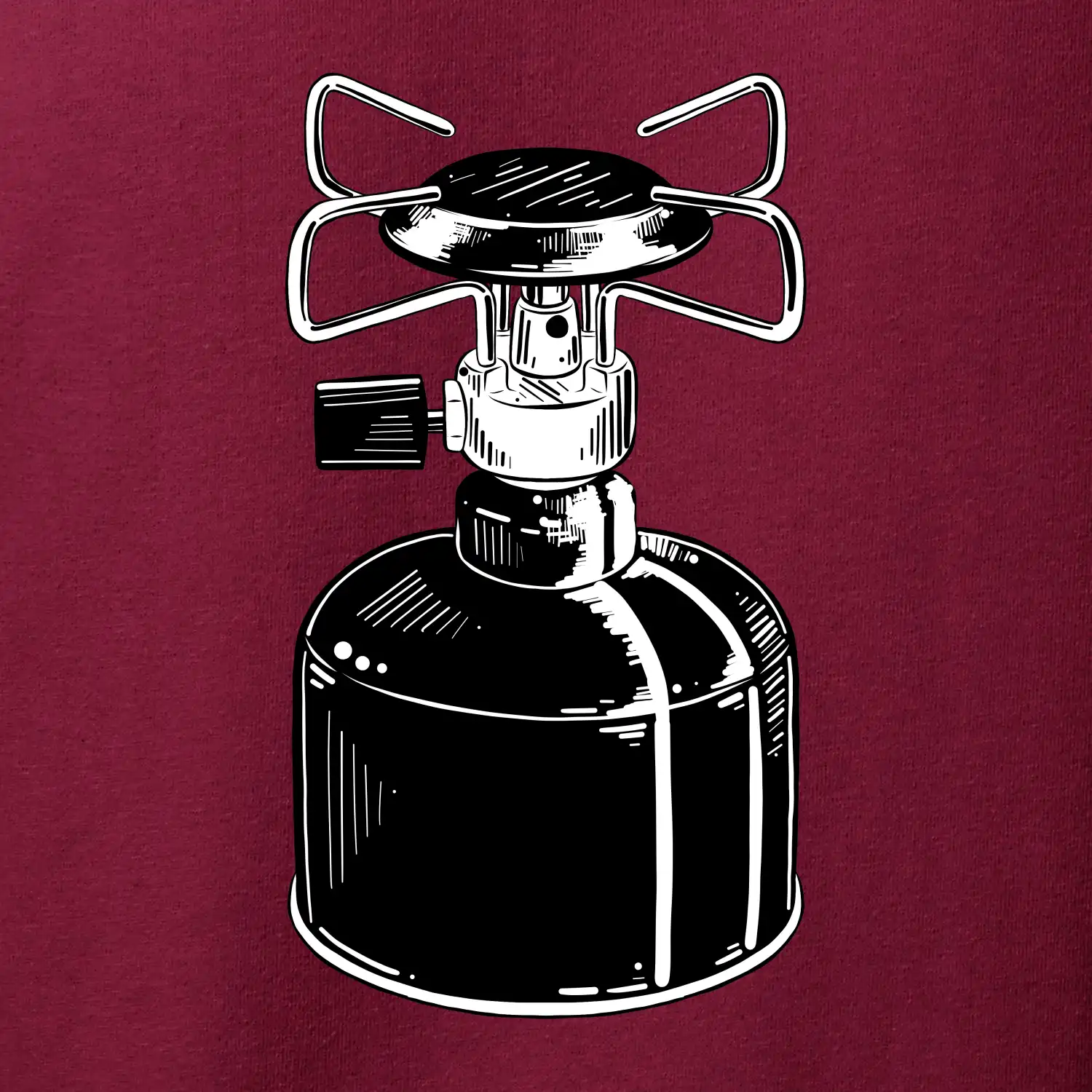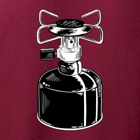 Tričko na kemping a pod stan, starý vařič.