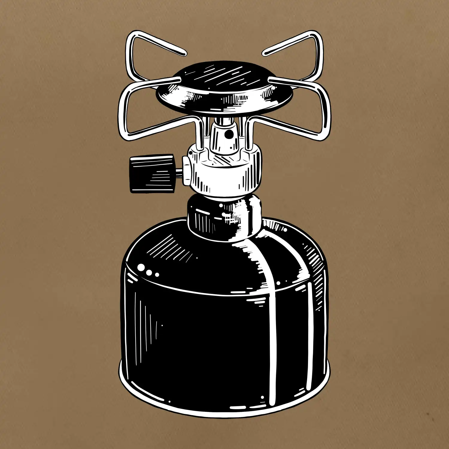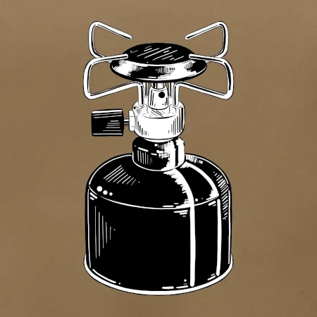 Tričko na kemping a pod stan, starý vařič.
