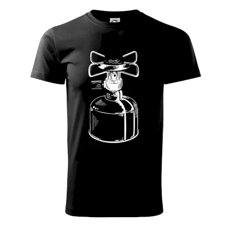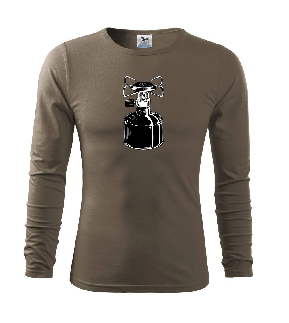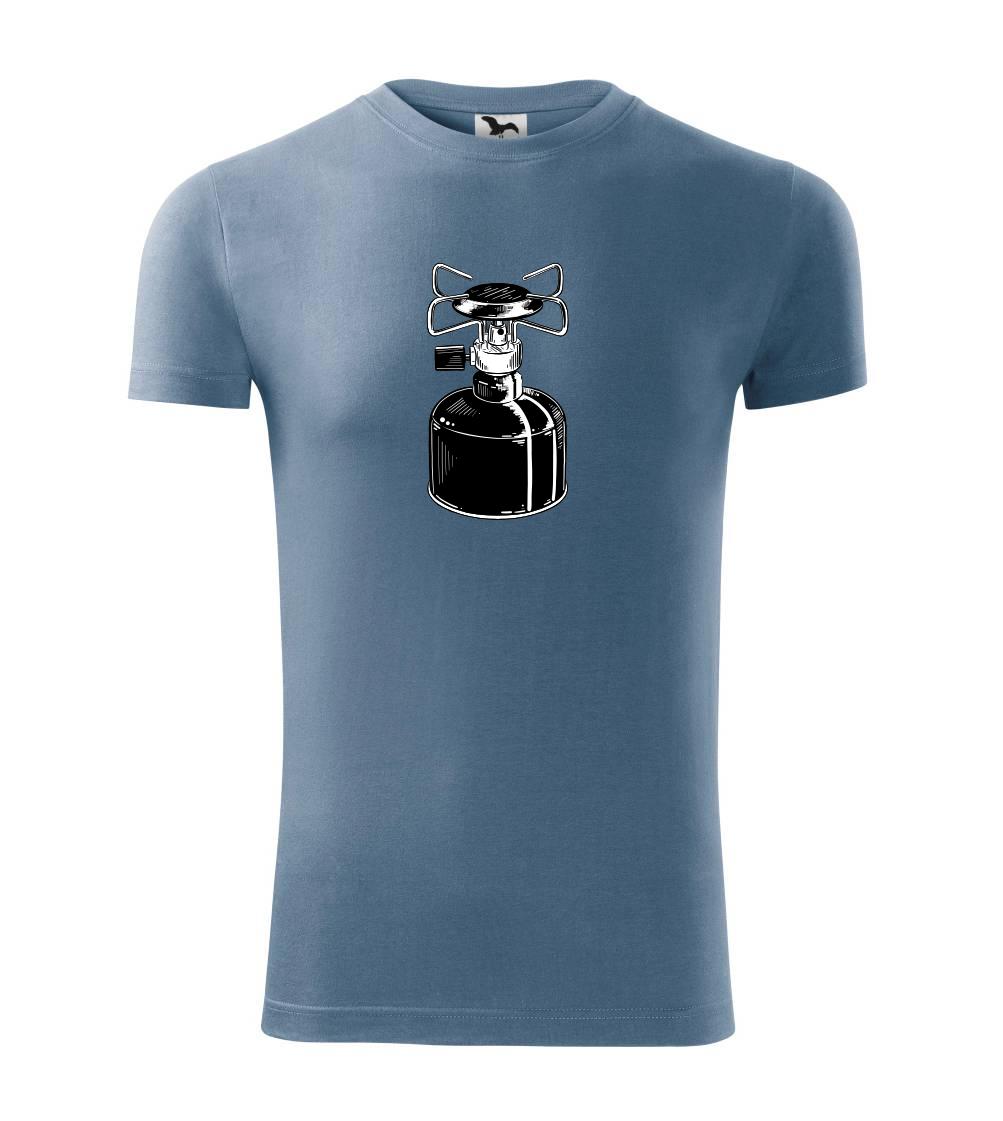 Tričko na kemping a pod stan, starý vařič.