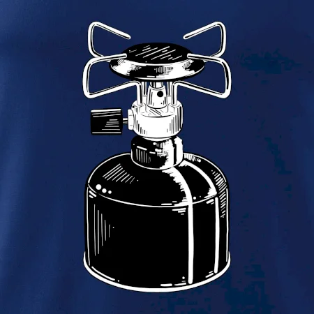 Tričko na kemping a pod stan, starý vařič.