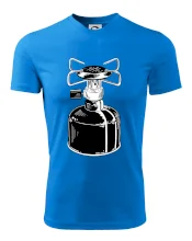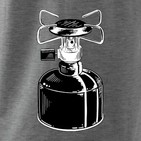 Tričko na kemping a pod stan, starý vařič.