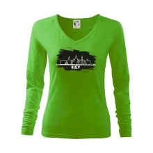 Tolerantnější vypasování dámského střihu, který je vhodný pro všechny typy postavy, ideální délka rukávů a konzervativní výstřih zakončený žebrováním, které skvěle drží tvar.